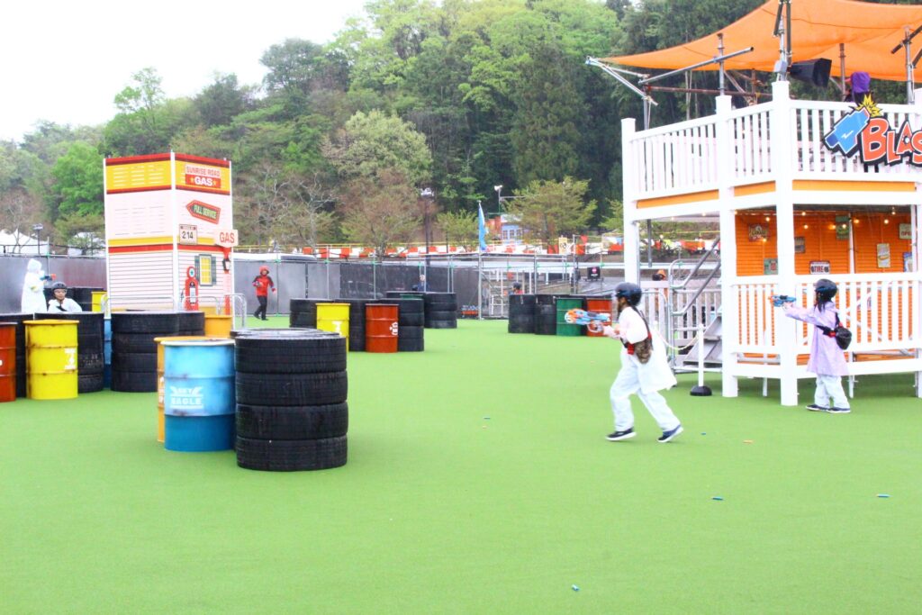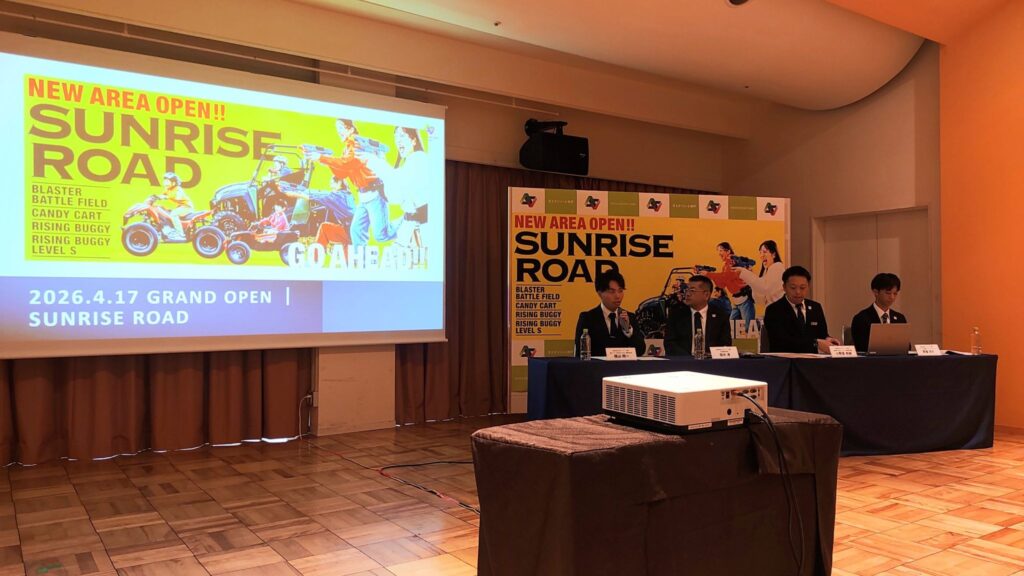 同社は、今年に入ってから順次新たなアトラクションを追加しており、集まったメディア関係者には4月17日からオープン予定の本格2乗りオフロードアクティビティ「ライジング・バギー Level S」の体験試乗や、最大45人同時対戦が可能な「ブラスター・バトルフィールド」のデモンストレーションを披露した。
