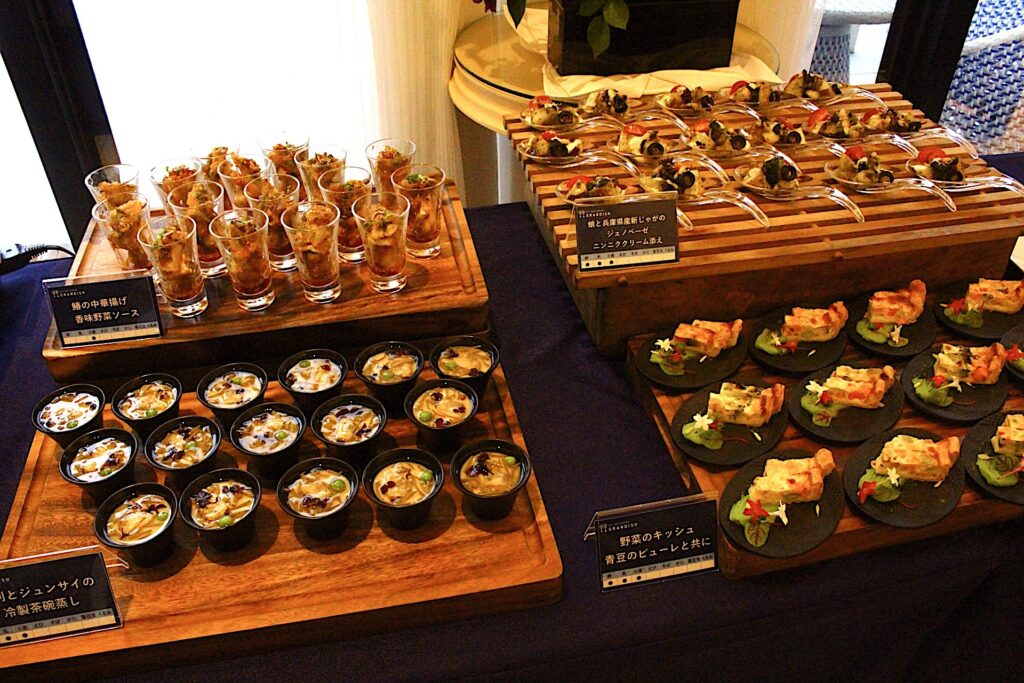 併設する宿泊施設の「リゾートの最高峰」ロイヤルスイートヴィラでは、ビュッフェや春から提供開始される新作メニューの料理の試食体験会も行われた。