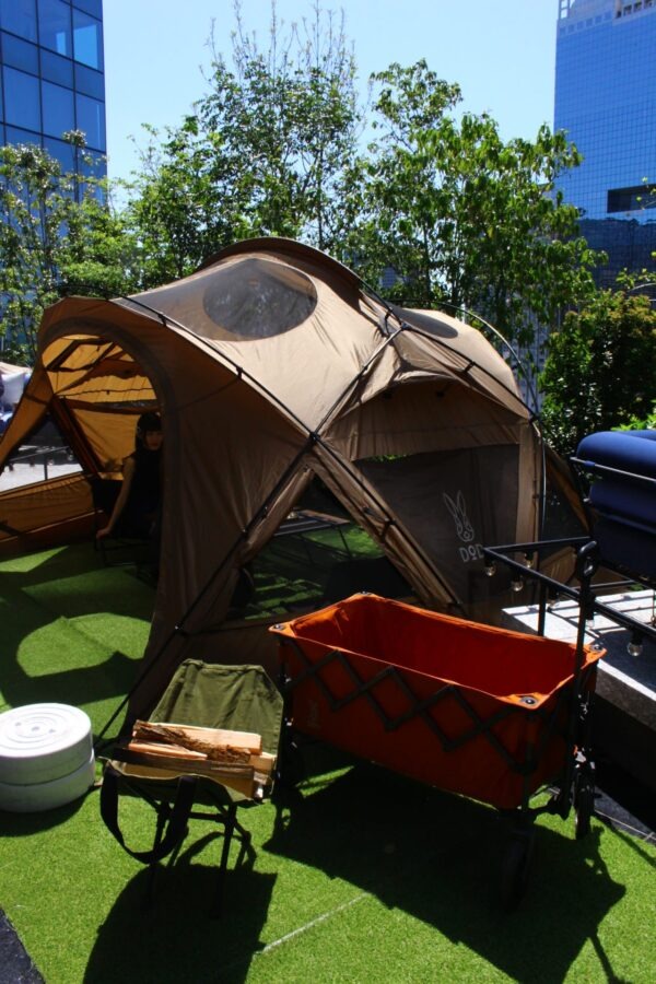 「キャンパーノ・ビアガーデン」という名称は、DODが実際の商品名でも展開している独自のネーミングスタイルをヒントに誕生し、「〝キャンパーの〟ビアガーデン」を表現したもの。
