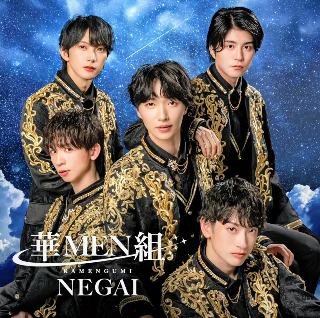 男性5人組アイドル歌謡グループ「華MEN組(かめんぐみ)」のビクター移籍第1弾「NEGAI」が4月6日付オリコン週間演歌歌謡シングルランキングで初登場いきなり1位になった。2年前に昭和・平成の歌謡ポップスを歌い継ぐことをコンセプトに男性6人組でキングレコードからアルバムデビュー、主に首都圏を中心に活動。今回の大ヒットで一躍全国区として認められ、6月17日開催「大阪発流行歌ライブ」(アメリカ村・BIGCAT)への出演も即決。メンバーは「大阪のファンに会えるのが楽しみ」と腕ぶしている。