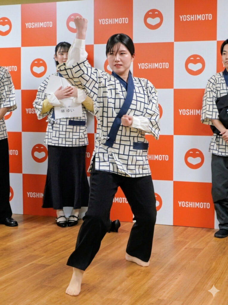 吉本新喜劇の間寛平GM(76)月例会見が行われ、4月から新たに加わった「金の卵13個目」5人(男性3人、女性2人)がお披露目。最年少はミュージカル女優を目指していた林ゆい(22)、最年長は漫才コンビが売れず4年前に解散した井下大活躍(40)。特技が殺陣の生島碧宙(22)、空手有段者の藤井遙佳(24)、元宝塚歌劇団照明係のウラケイ(25)と持ち味豊か。あいさつ代わりのパフォーマンスでアピールした。