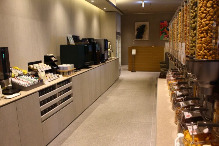 シェアラウンジスペースの利用は、スタバのコーヒーやラテ、ハーブティーなどを含むソフトドリンク飲み放題パックで、1時間1320円(アルコール込みだと1760円)。この金額でスタバのコーヒーなどが飲み放題で、Wi-Fiやコンセントを備えたテーブルや座席が自由に使える。ナッツ類やソフトクリーム、スープ、ジュースなども自由に取り放題。