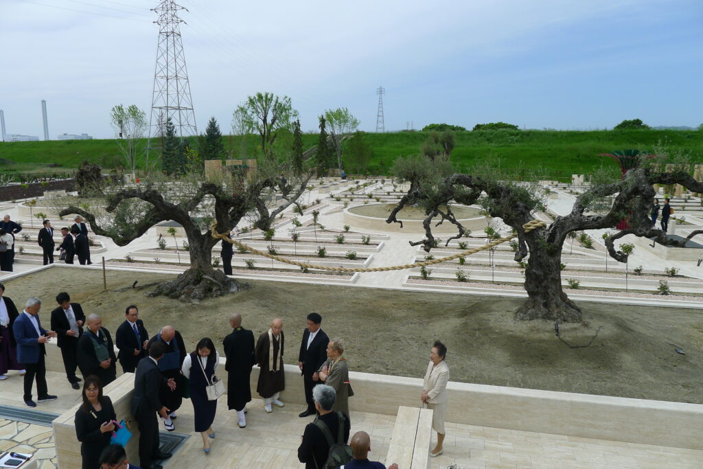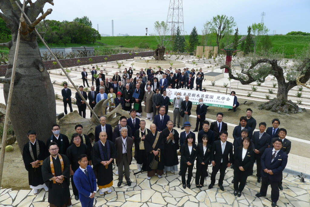 霊園開発や墓石販売を手掛ける「西鶴」は4月21日、枚方市の「ハピネスパーク牧野霊園」内に、都市近郊型としては日本最大級となる樹木葬「千年オリーブの森 枚方・牧野」の新エリアを開業した。式典には、宗派を超えた僧侶・祭司50人以上が集い、新しい供養のカタチの門出を祝った。