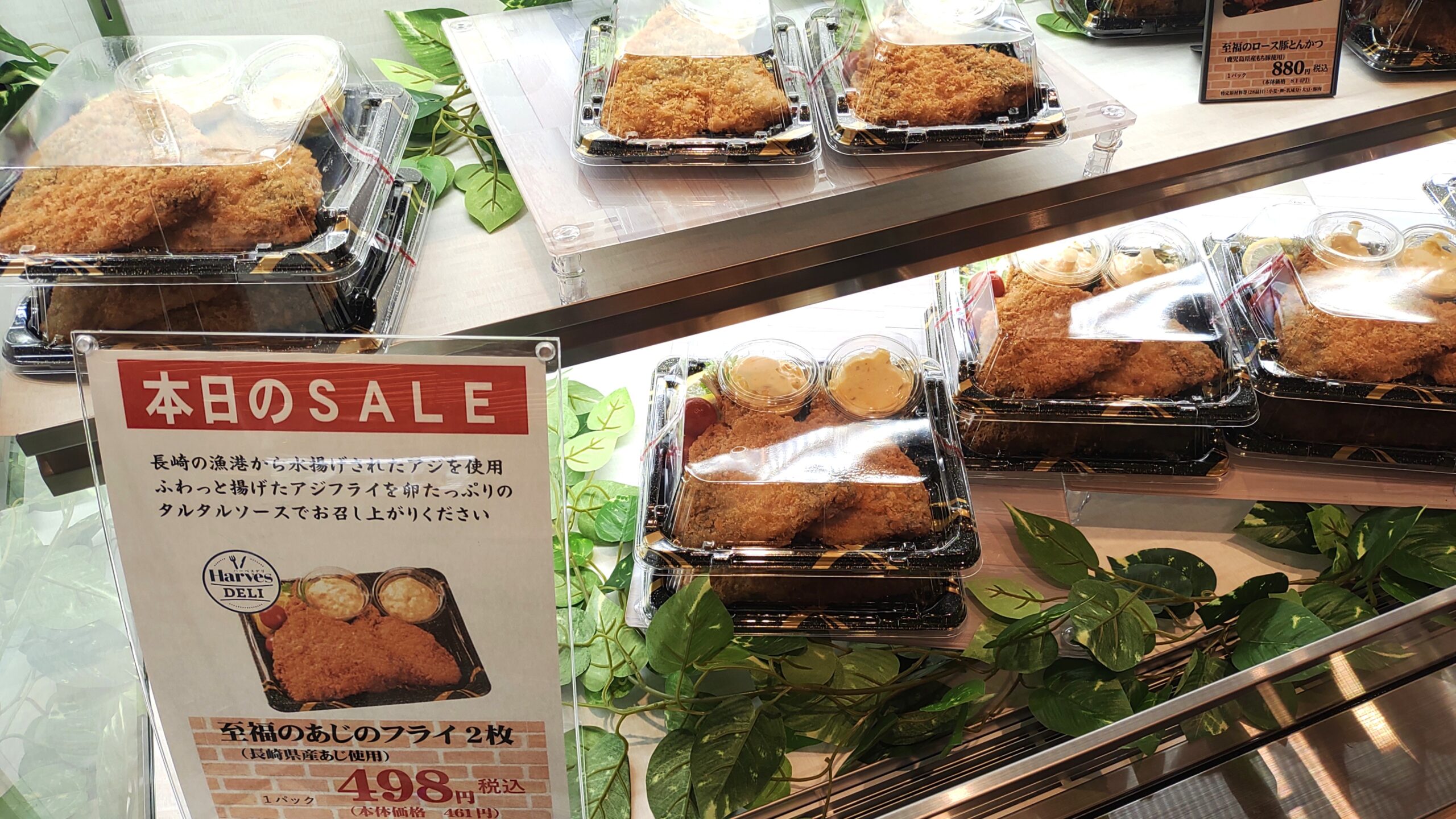 「ハーベスデリ」は、ボリュームタップリの弁当を取り揃えている。中でもプリプリで身がたっぷりの至福のエビチリと大きな切り身がドンと入っている至福のあじのフライはおすすめ。見た目のボリュームだけでなく味も本格的でご飯が進むこと間違いなし。