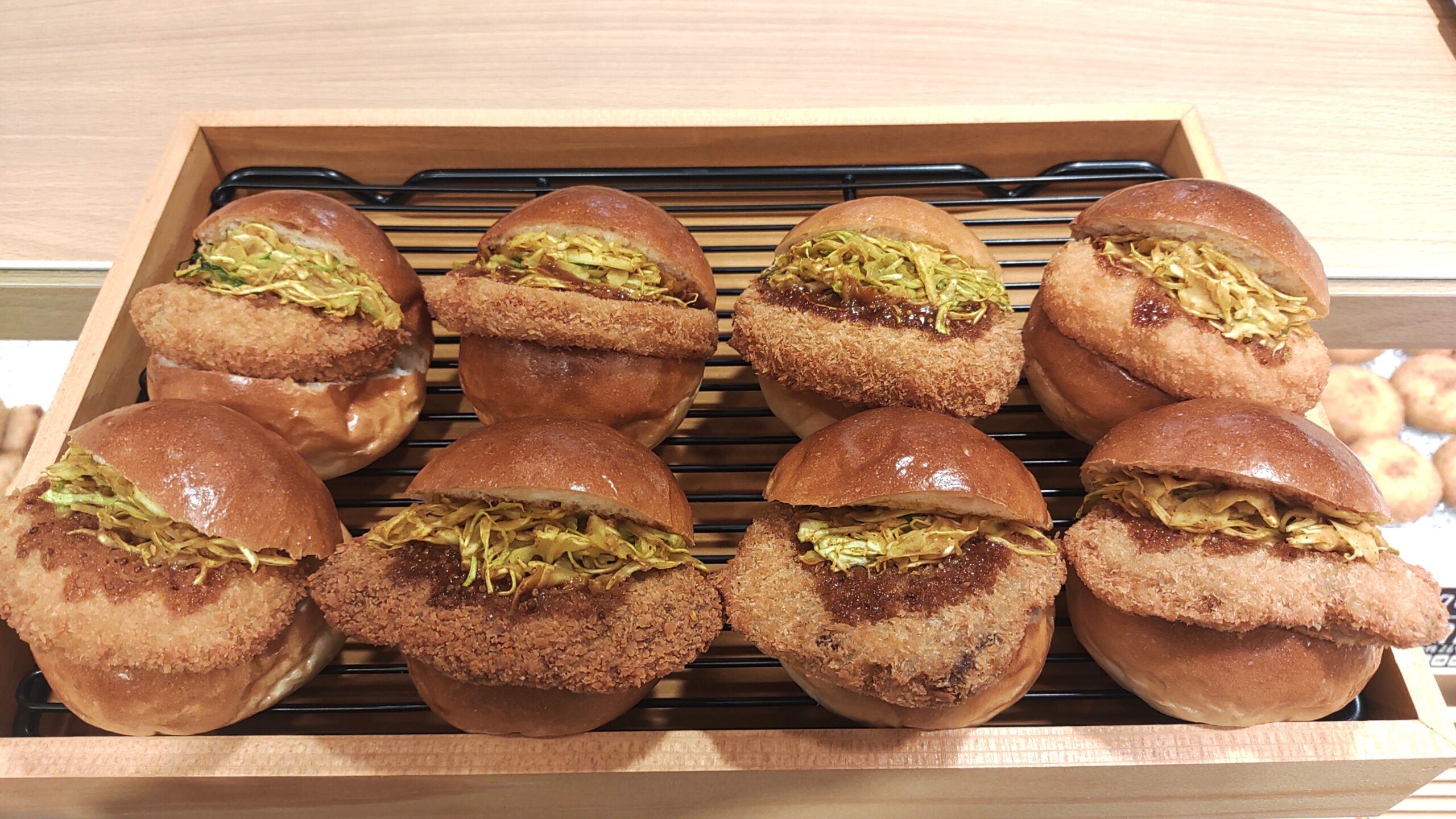 同じ具材でも衣を変えて揚げているので、コロッケとかつぱんでは味や食感が違う。「こんかつ」という洒落たネーミングのコロッケや、ゆで卵がたっぷり入ったカレー味の「玉子コロッケ」などバラエティ豊富に取り揃えている。