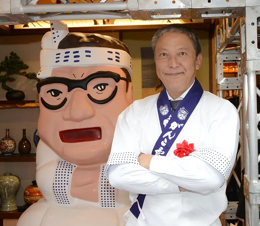 「がんこおやじ」は高さ190㌢で、創業者の小嶋淳司氏がモチーフ。絵から飛び出し、巨大オブジェとなるのはキャラクター誕生以来、初めて。